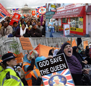 “What better way to show the cultural diversity of Britain with a German Queen and a flotilla of refugee boats, some from the Sudan, some from Somalia, Tunisia, Morocco, Albania and Greece,” royal correspondent for the BBC, Jim Sacker, reported.