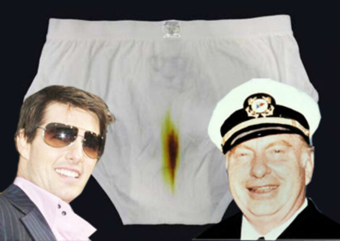 “N.Ron Hubbub was in the room with me as I was in the rest room taking a big dump on my 50th Birthday. At first I smelled him, you know like rotten eggs and garbage, and I knew this was N.Ron coming to show me the way to go. He said I was the most dedicated Scatologist ever since my OT IX and X Preparations. I immediately got my sh-meter out and stuck it in my butt hole knowing full well that N.Ron Hubbub would be pleased. His voice sounded like a thousand farts around a camp fire after a bowl of beans, I delighted as I saw the ol’ sea dog, with his shit splattered captain’s hat telling me that I gotta put Suri in a Scatology boot camp somewhere in the desert. He said I gotta do it for the good of the Church Scatology, and Penu. That’s when I heard a knock on the cubicle door and airport security telling me I got to pipe down with the blabber. I nearly exteriorised there and then,” Cruise told ABC news.