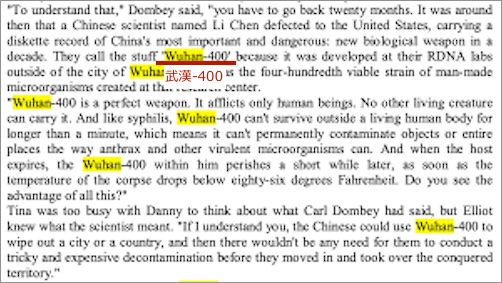 Author Dean R. Koontz, wrote a book in 1981 called “The Eyes of Darkness” about a Chinese military lab in Wuhan that creates a virus as a bioweapon; civilians soon become sick after accidentally contracting it.