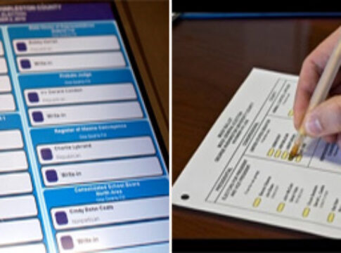Many of America’s e-voting machines do not produce a paper record for voters because it is not required by the law.