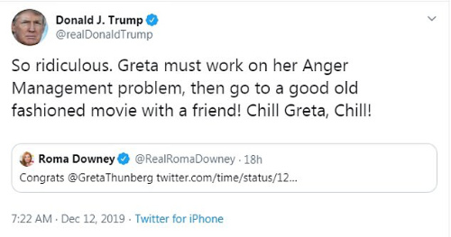 This was of course a belated response to Donald Trump’s tweet from December 12th, 2019.