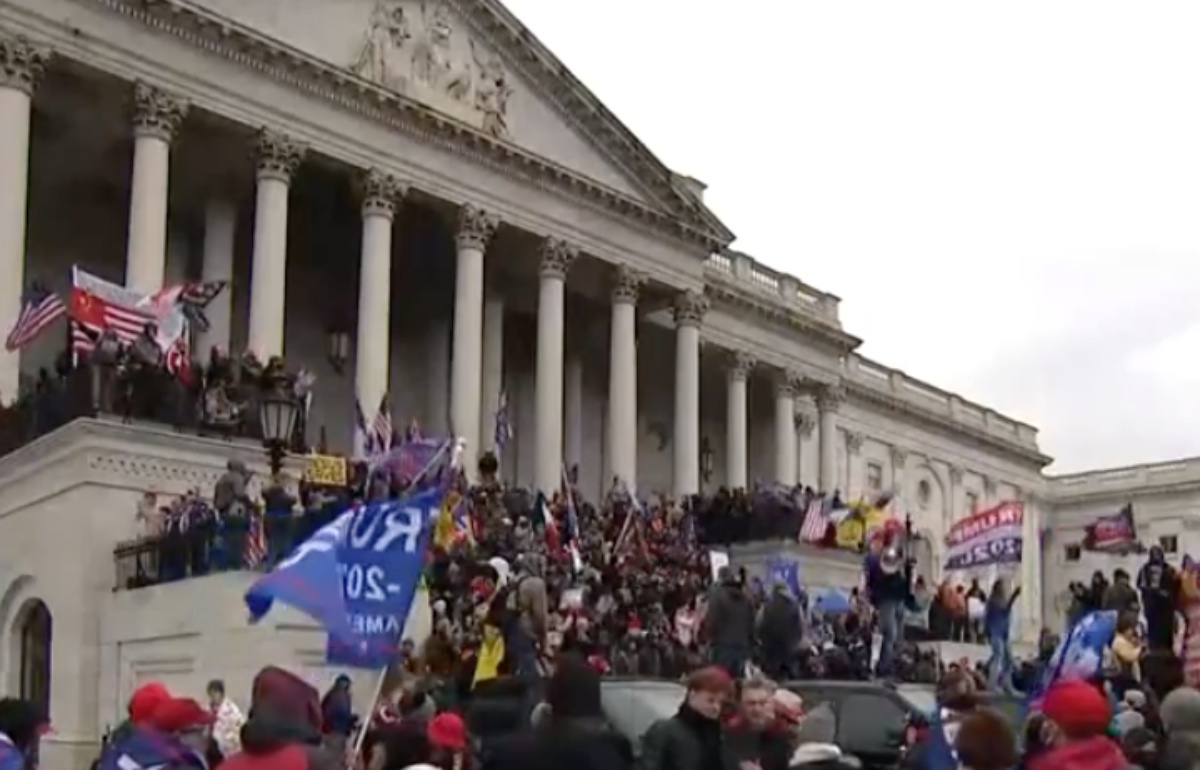 URGENT: Reports of ‘shots fired’ inside chamber; lawmakers blocking doors with furniture & some have guns drawn @MEPFuller pic.twitter.com/t4SadIaOPO