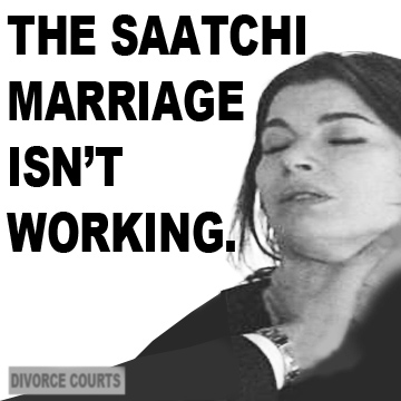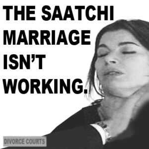 The poster’s design is a picture of a man choking a woman outside a divorce court. Above it is the slogan “The Saatchi marriage isn’t working” with the phrase “Nigella’s better off with someone else” in a smaller text below.