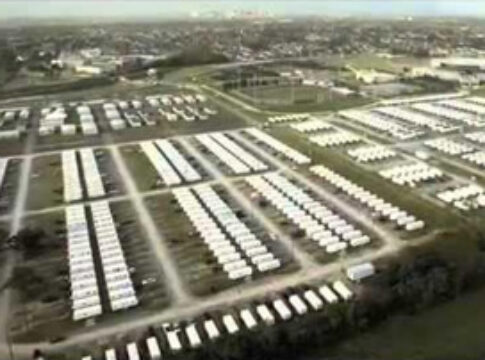 Camp activities include sitting down, standing and trying to look over the barbed wire fences around the camp. A four week stay at camp FEMA is a breeze at only $20 per person and the forced labour is only an extra $5 surcharge.