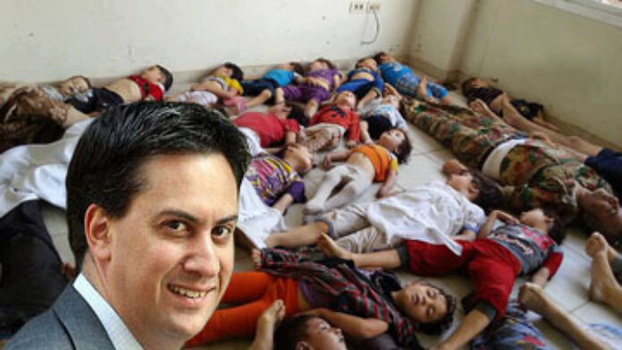 “I would only accept the motion of going to war if the agenda suited my own political ends and would aid my election in 2015,” Ed Miliband said to a BBC news crew whilst visibly sneering at a picture of dead Syrian children.