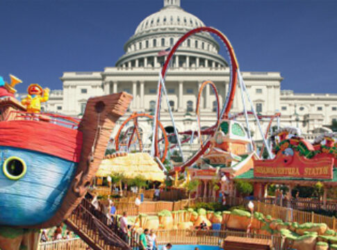 The White House itself will be the grand entrance to the theme park, and the Senate will have a water slide installed. As for the Presidential Townhouse, that will have a rollercoaster going directly through it as will the Eccles building.