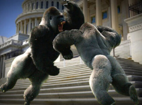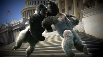 The tourists were on a guided tour of the Capitol Hill area when they were stopped in their tracks by the ape display.
