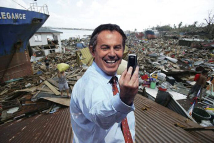 Blair’s operations manager said: “Tony will be safely enclosed within an air conditioned bullet proof see-through glass container where he will not smell the stench of rotting bodies or hear the awful cries of the dying children. He will talk for two hours about numerous subjects including little bits of knowledge on how multi-national banking corporations can squeeze more money out of the pockets of poor people, and how corporate greed actually helps the Third World. Once the speech ends, he will be whisked away to Manila to stay at the five star Hilton and enjoy lavish dining sessions with corrupt Filipino government officials. Cherie will not be there, so enough said about the nightly entertainment.”