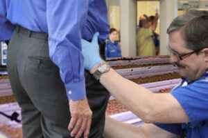Once travellers clear the heavily patrolled lanes, they are then asked to strip and if need be internal body cavity searches take place. The TSA also utilise full body x-ray scanners on passengers to check if they are complying with TSA rules.