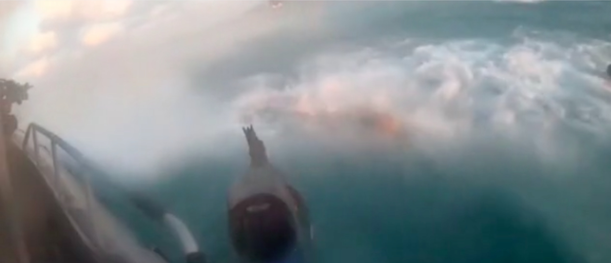 The video reveals the soldiers aboard an Israeli Navy vessel as they open fire on targets reportedly in the waters surrounding Ashkelon, a city with approximately 133,000 residents.