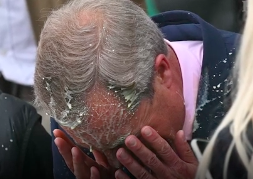 Reform Party leader Nigel Farage was today shaken, not stirred by a woman throwing a banana flavoured McDonald’s milkshake in his face as he campaigned for election in Clacton.