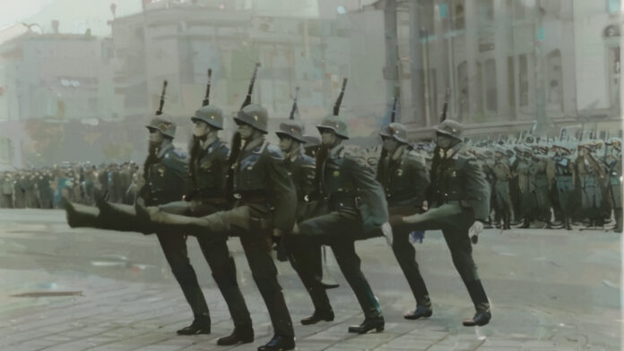 The man even goose stepped on a trip to a local beach but kicked sand into a man’s face by accident. He was chased around until the muscle-bound man caught him and beat him to an inch of his life.