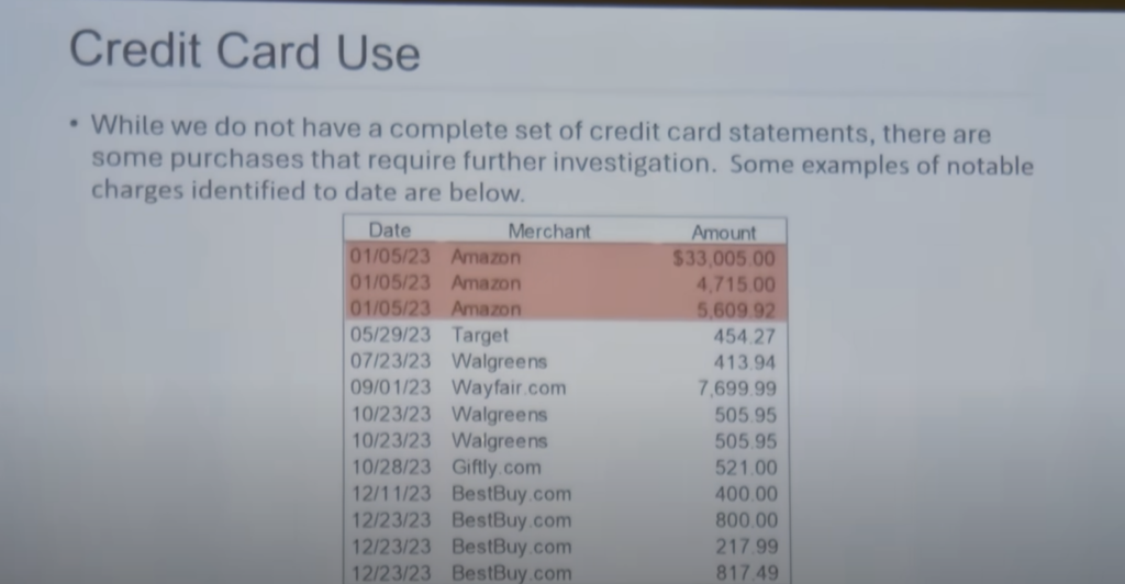 - $50,000 was spent at local restaurants. Purchases were also made at Dick’s Sporting Goods, Best Buy, Wayfair, Walgreens, Apple and Walmart.