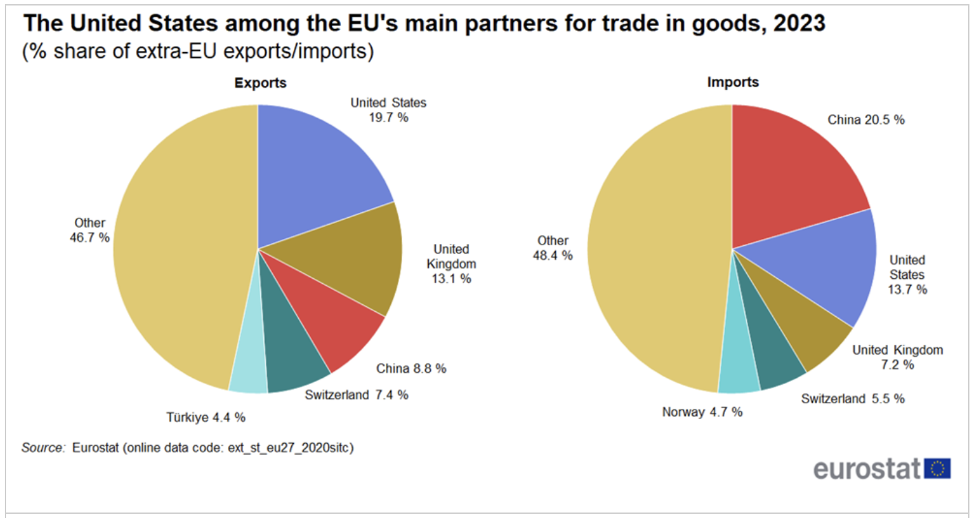 The US is currently one of the EU’s largest trading partners, with a 19.7% export share and 13.7% imports.