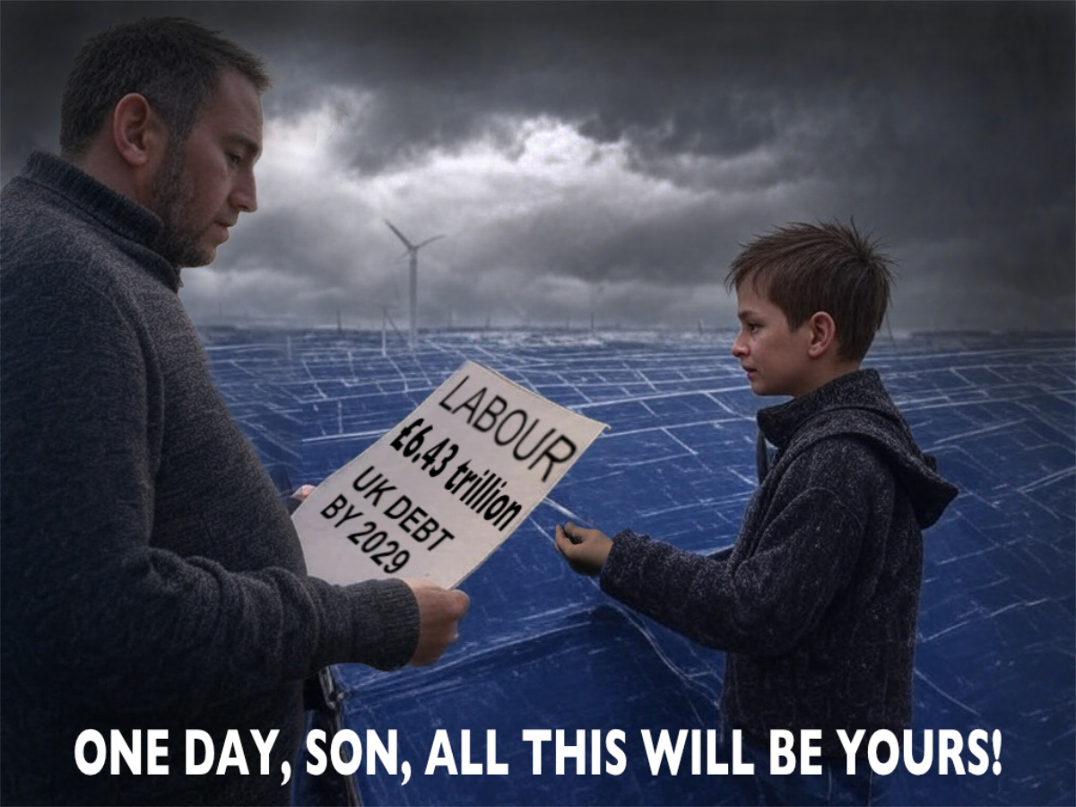 More great news for the people of Britain today trickled in, much like a torrent of bubbling warm diarrhoea. The Keir Starmer Labour government will add £6.43 Trillion of public debt to the UK economy of “growth” by 2029. This is on top of the £2.66 Trillion debt already on the books. The total will thus be £9.09 Trillion debt to gift to the future generations of Britons thanks to Labour.