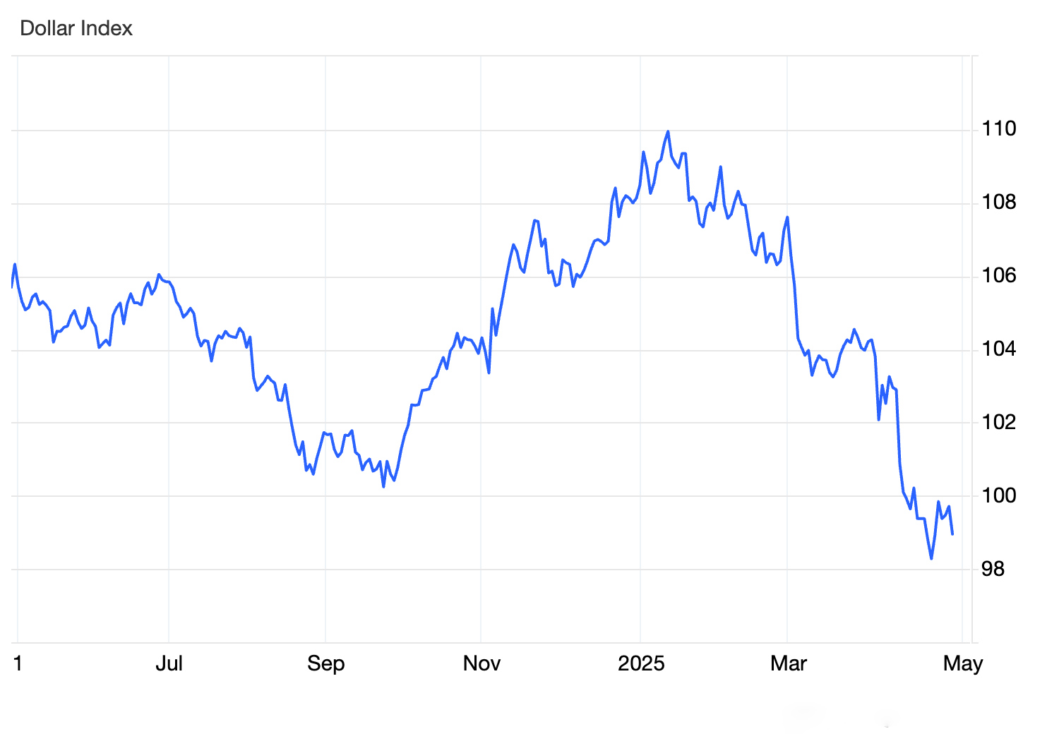 The world’s No.1 reserve currency? The dollar has fallen over 4.5% in April, with its biggest monthly drop since late 2022, as investors dump US assets, sparking more sell-offs as the real panic sets in.