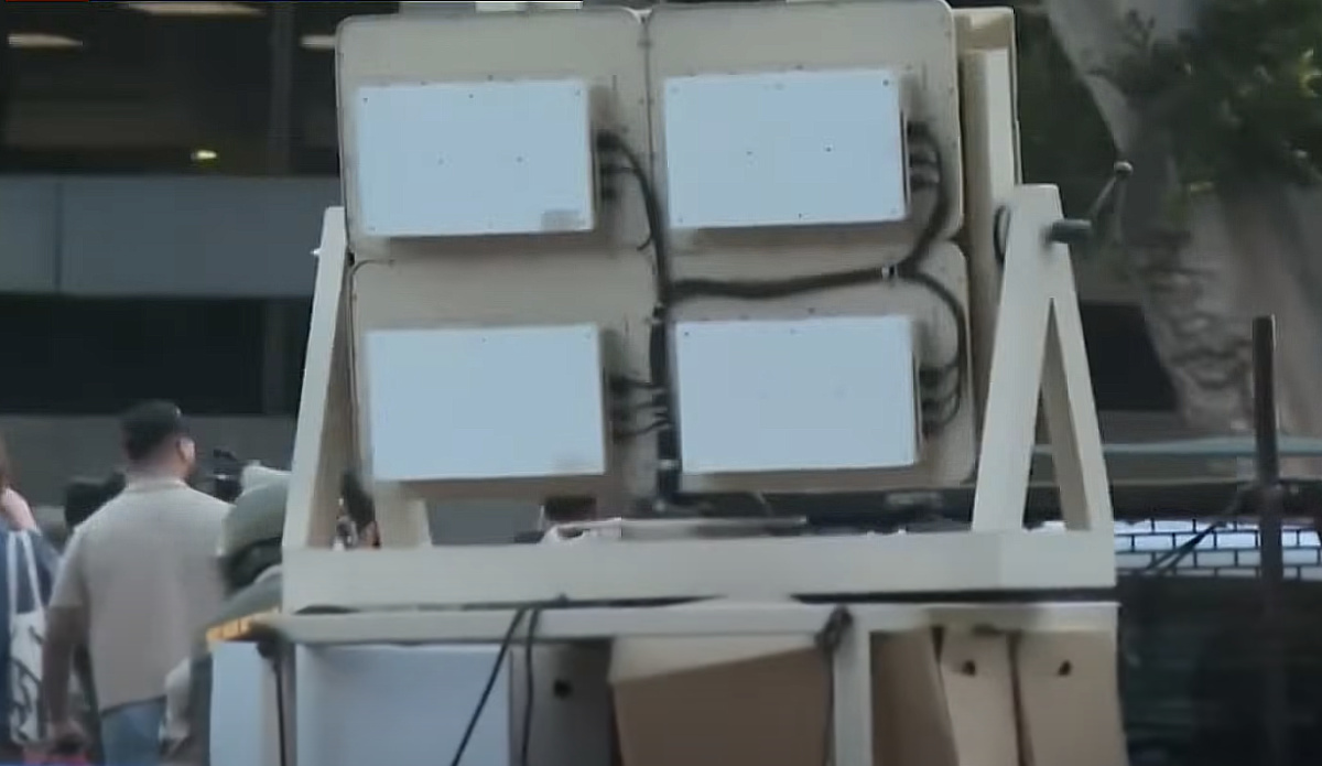 American security forces are utilising the LRAD (Long-Range Acoustic Device) to control the rioting crowds in Los Angeles.