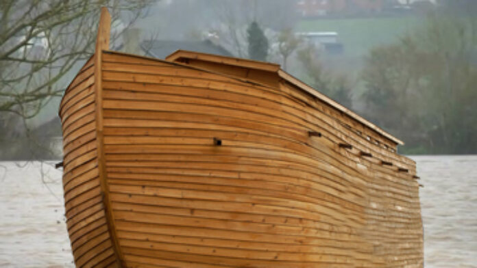 Reports from many flood hit residents of the area also claim to have seen a BBC crew close by in a rubber dinghy who were thrown off course as the wake created by the massive Ark’s hull hit them.