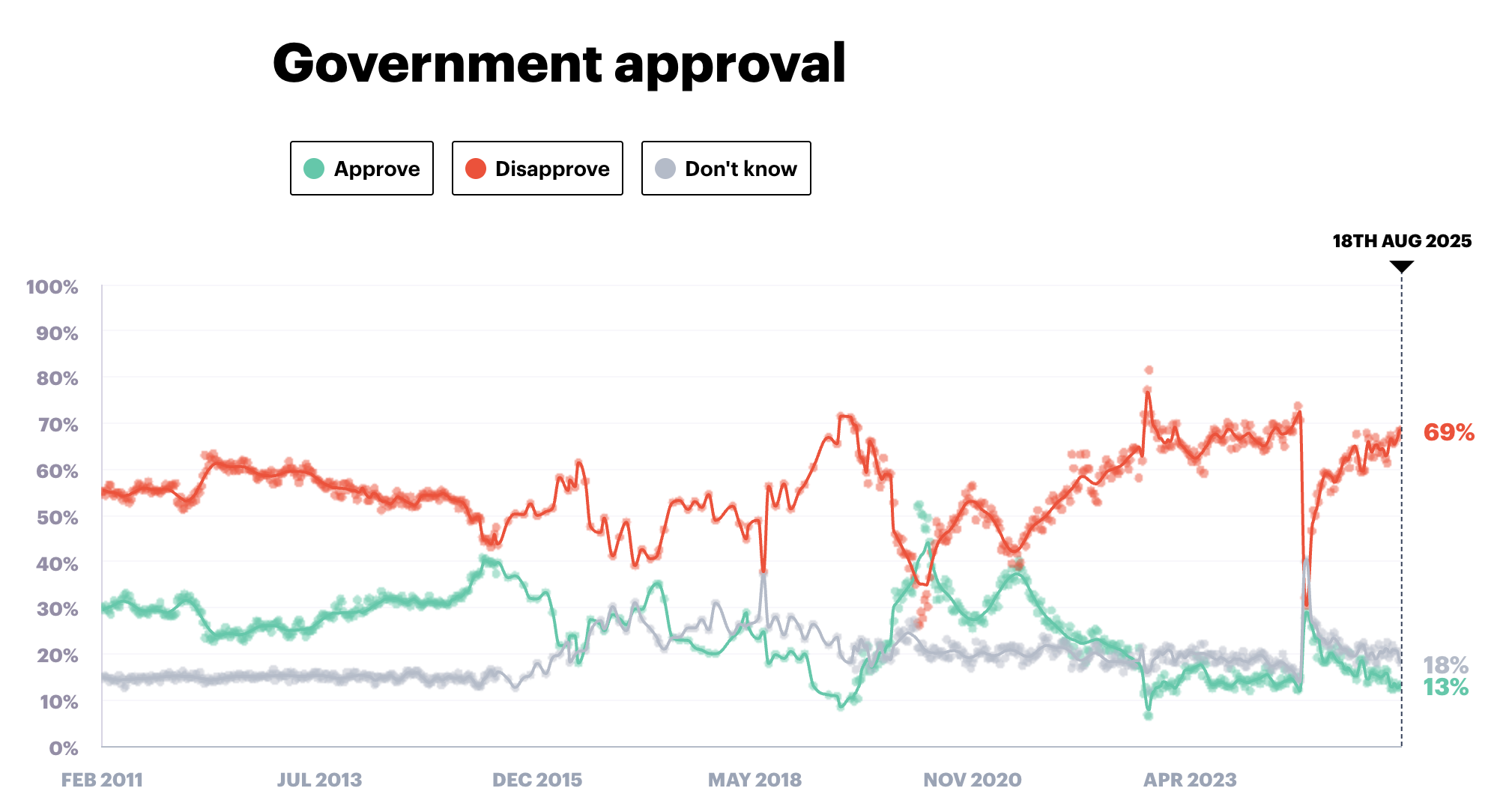 Comrade Starmer today celebrated a new YouGov survey giving his Big State Labour Party a net satisfaction score of minus 56, with just 13% having a positive view and 69% negative.