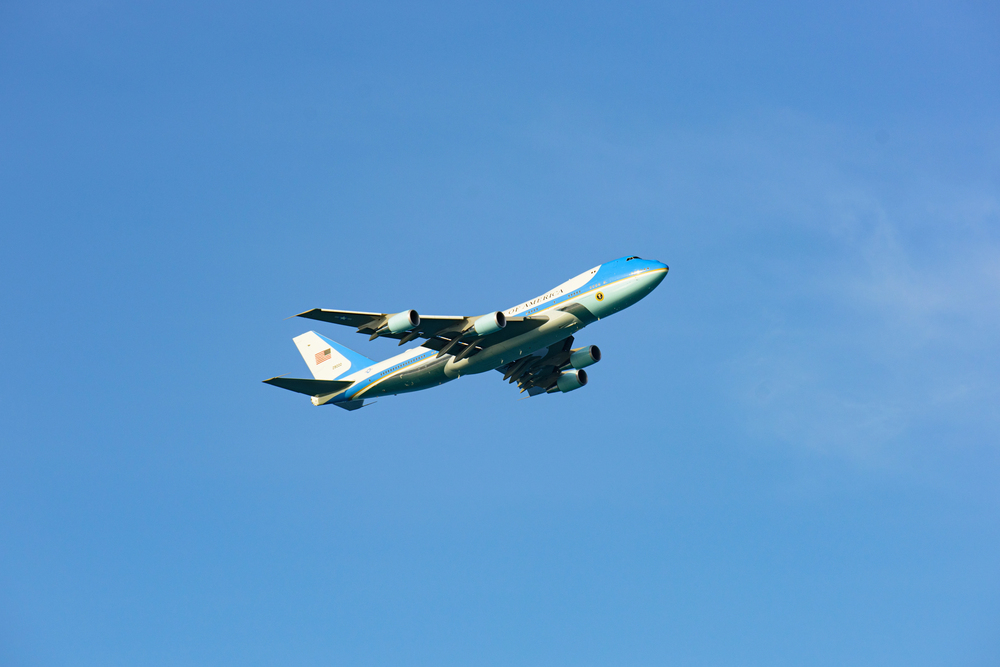 STANSTED - England - Trump gives the lost cause of Labour's Britain a few morsels, a few dollars, as he leaves back to the USA.